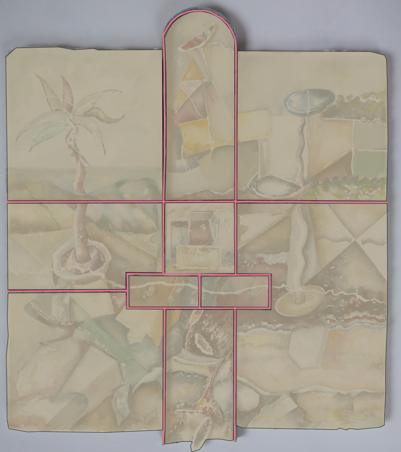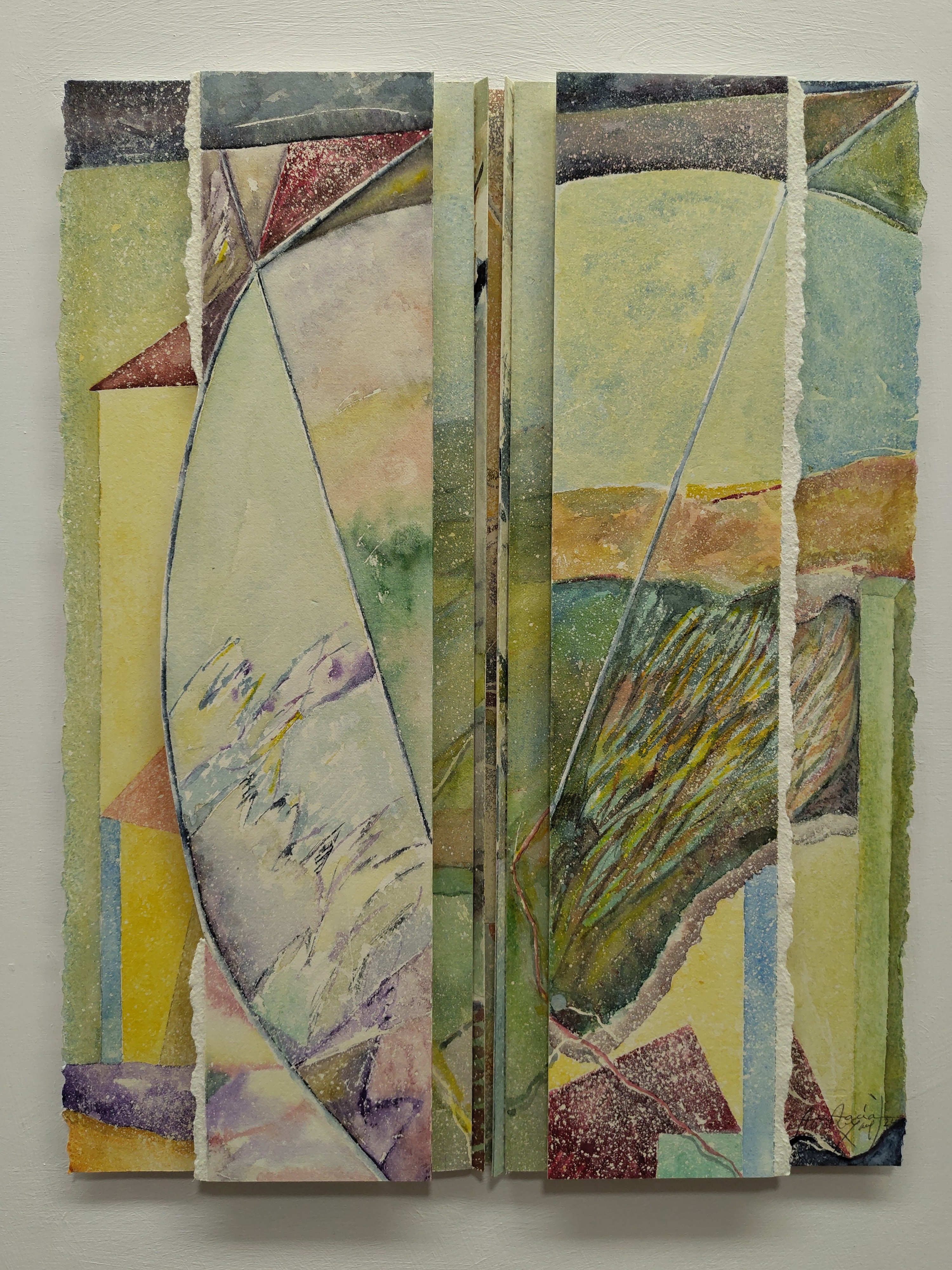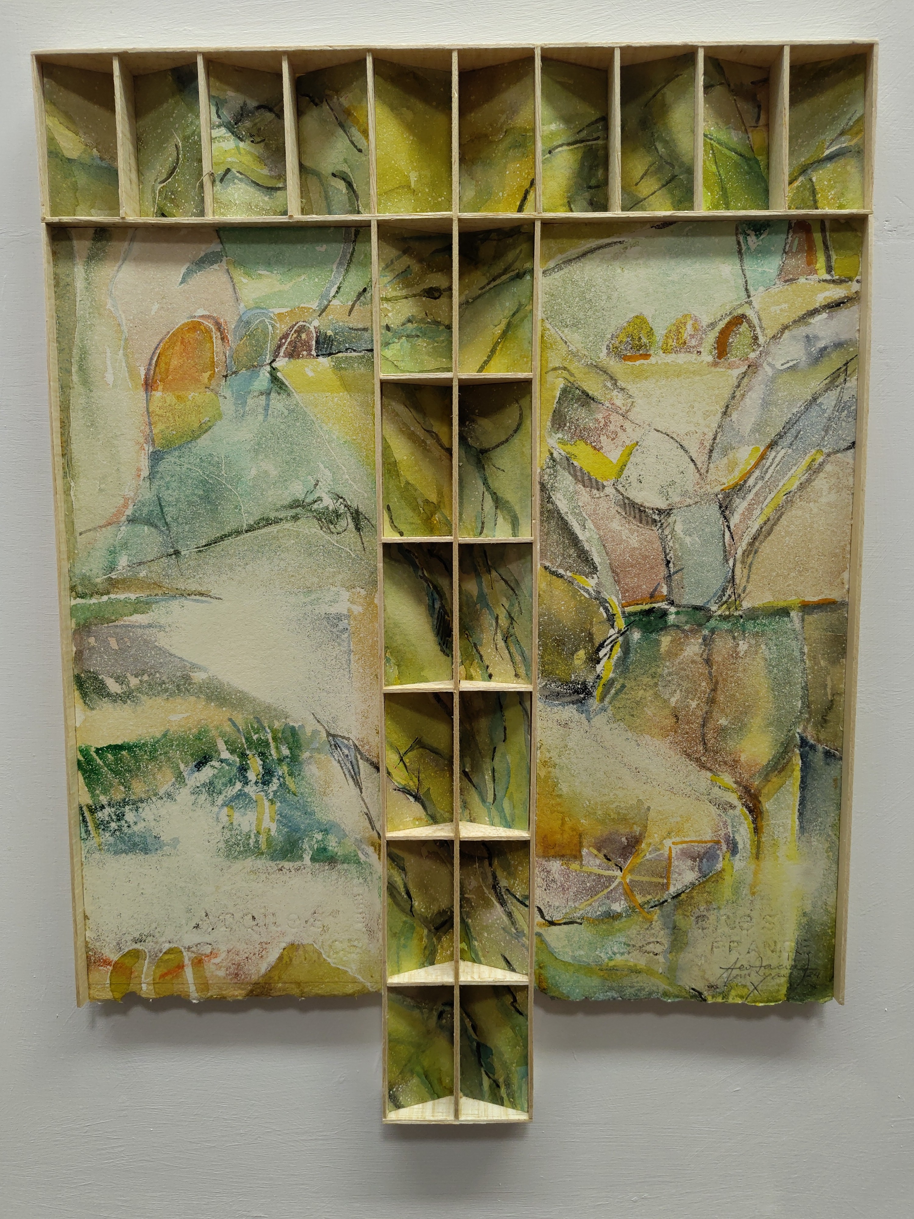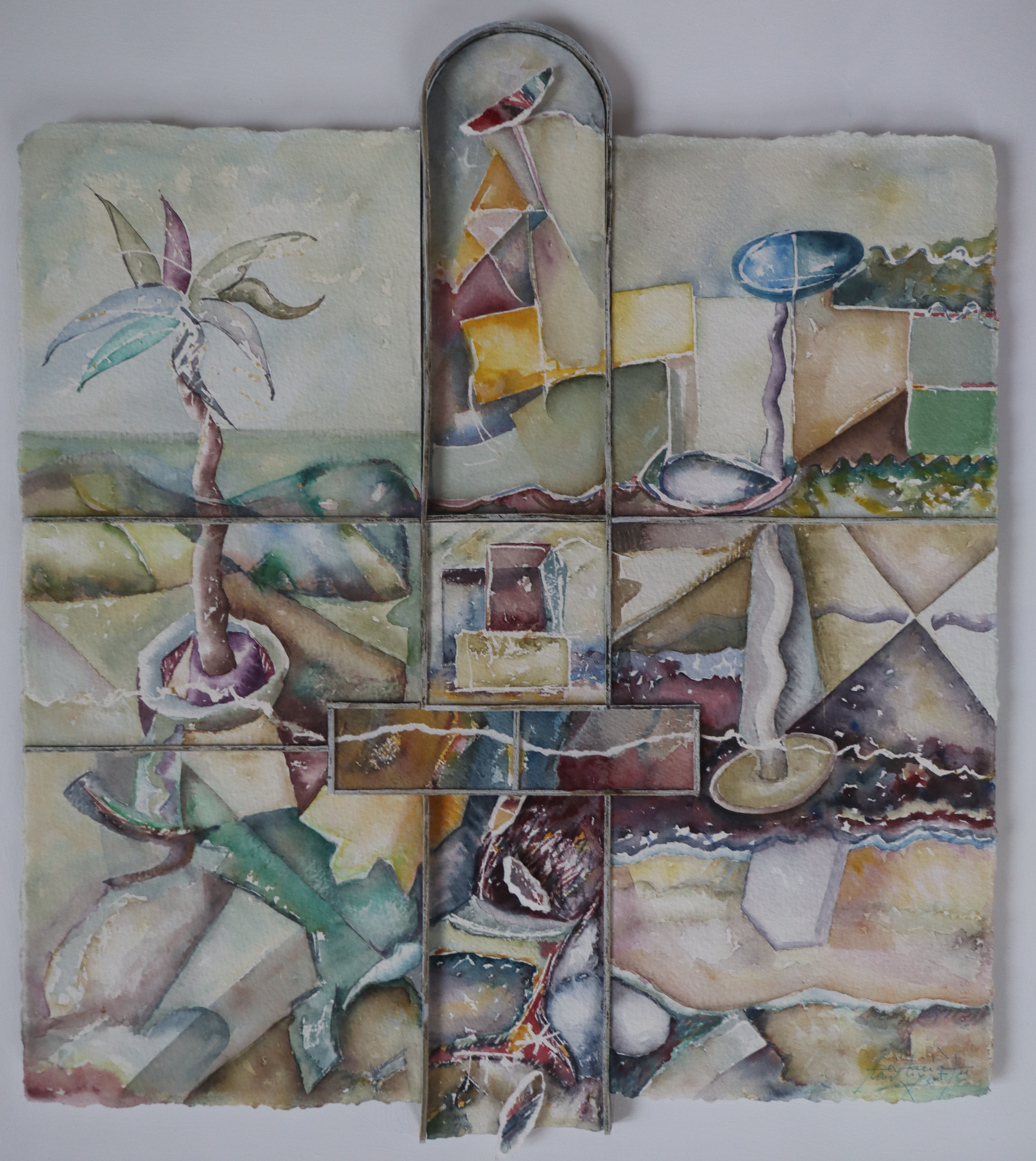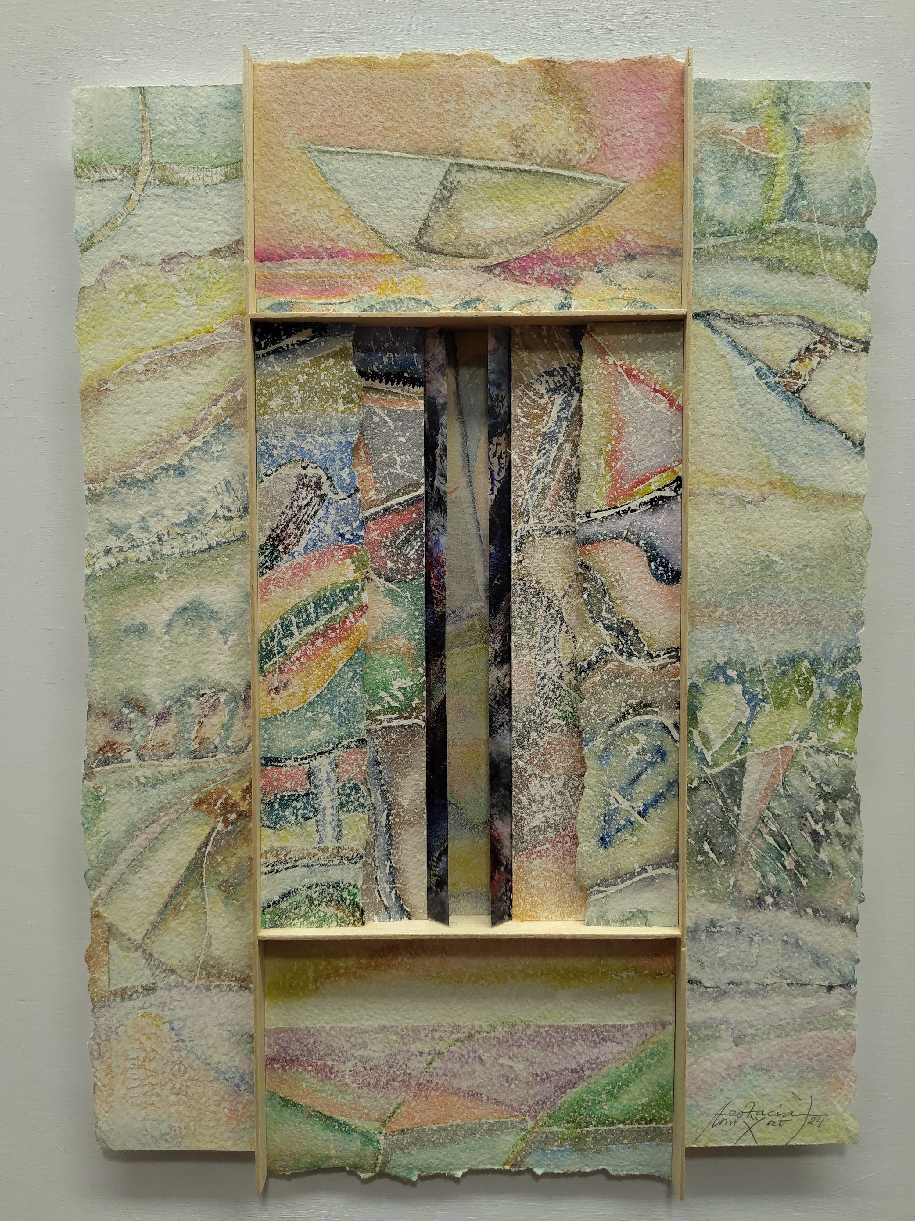 While paying attention to a painting by the father of my oldest friend —Juan Macías the father, Pablo Gómez the son— , titled “Paisaje del regocijo” (“Landscape of Rejoice”), I realized that, due to the artist’s play with different planes, simply by rotating the painting 90 degrees and making it horizontal, the landscape could be walked through. It could serve as a tool for introducing virtual world generation to the artist by first making their existing work walkable.